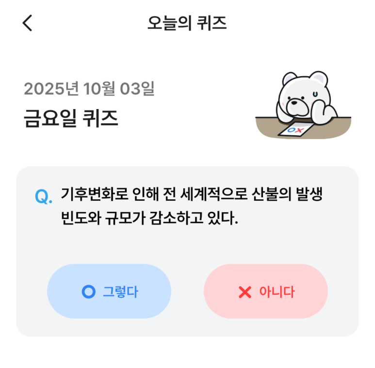 2025년 10월 3일 기후퀴즈 정답, 오늘도 확인하고 참여하셨나요?